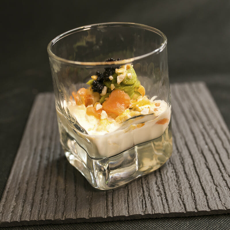 Degusta «Hechizo», nuestra apuesta para esta X Ruta de la Tapa, un tartar de salmón con gambas y huevo a baja temperatura.